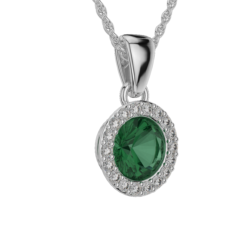 Round Shape Emerald and Diamond Necklaces 0573