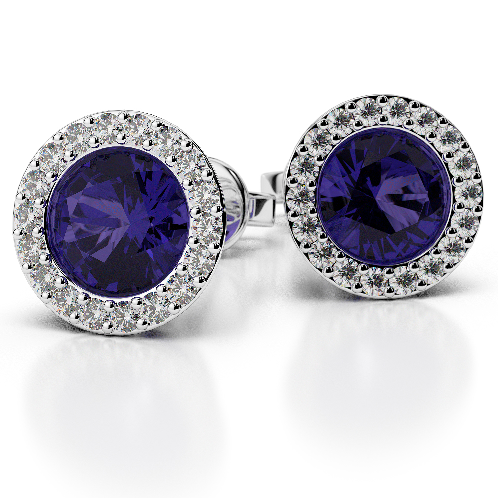 Round Shape Tanzanite and Diamond Earrings 0480