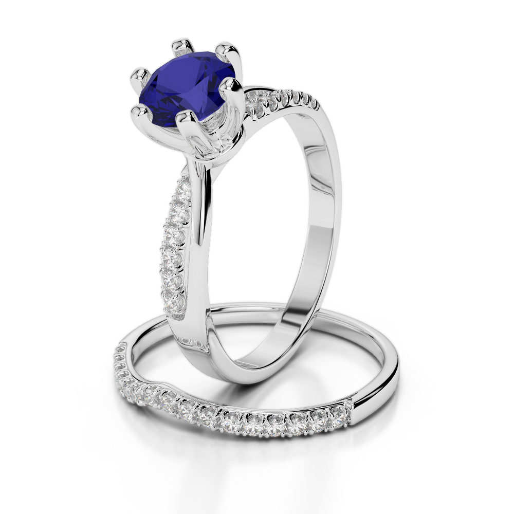 Scallop Set Blue Sapphire and Diamond Bridal Set Ring 0334