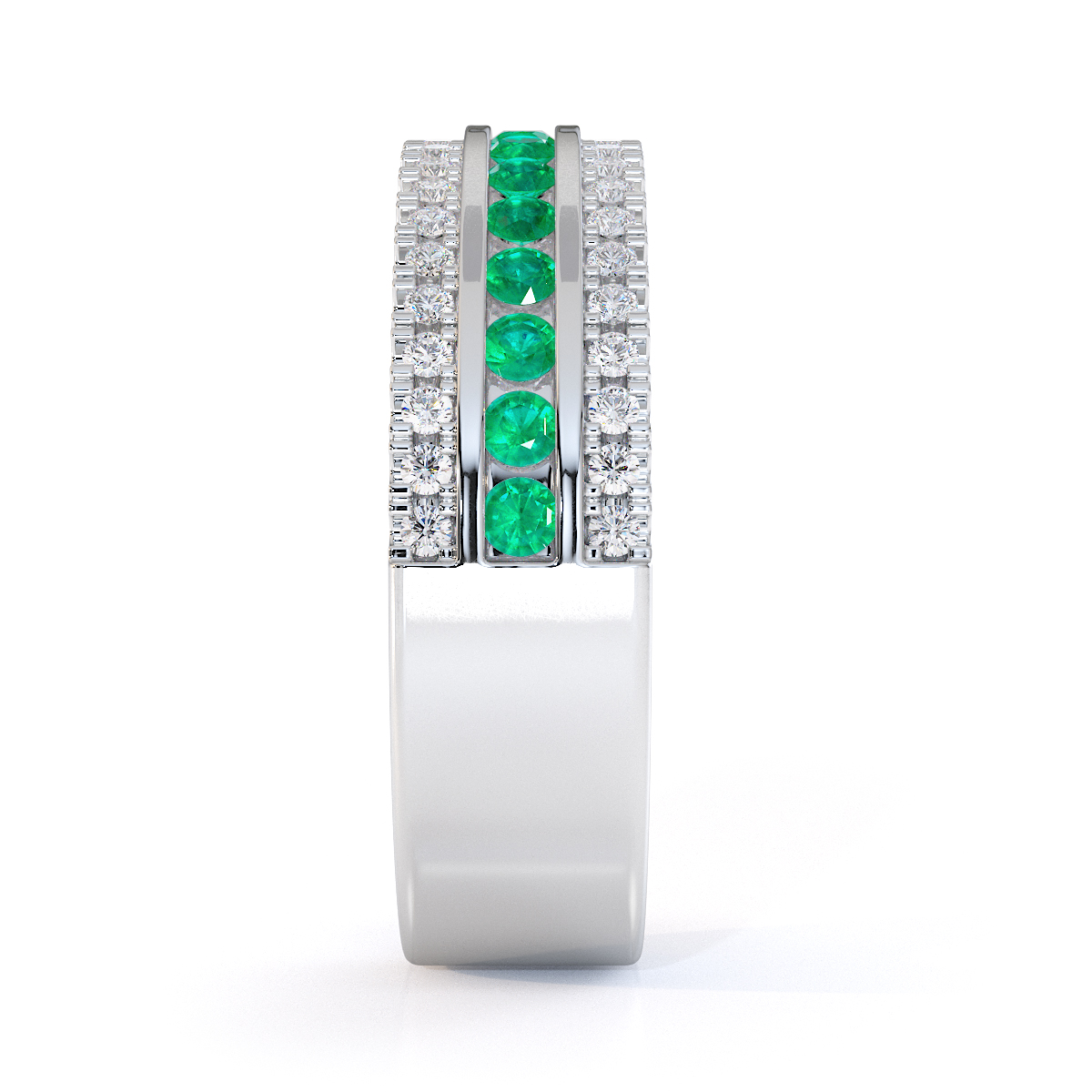 Three Row Channel Set Emerald and Prong Set Diamond Half Eternity Ring 0451