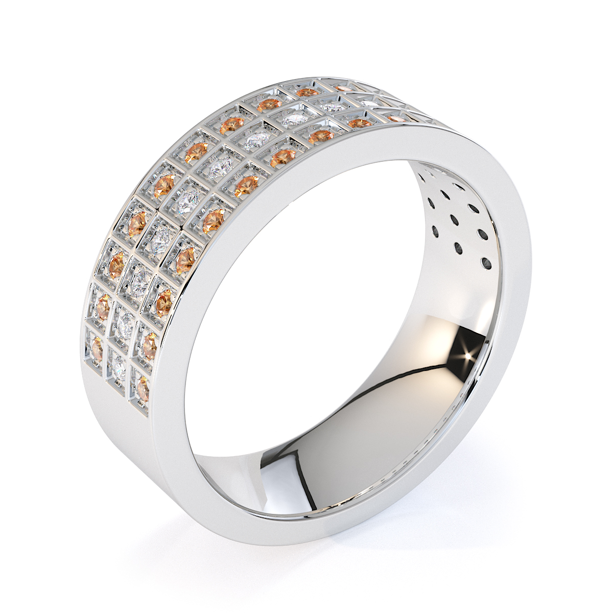 Three Row Claw Set Citrine Half Eternity Ring With Diamond 0437