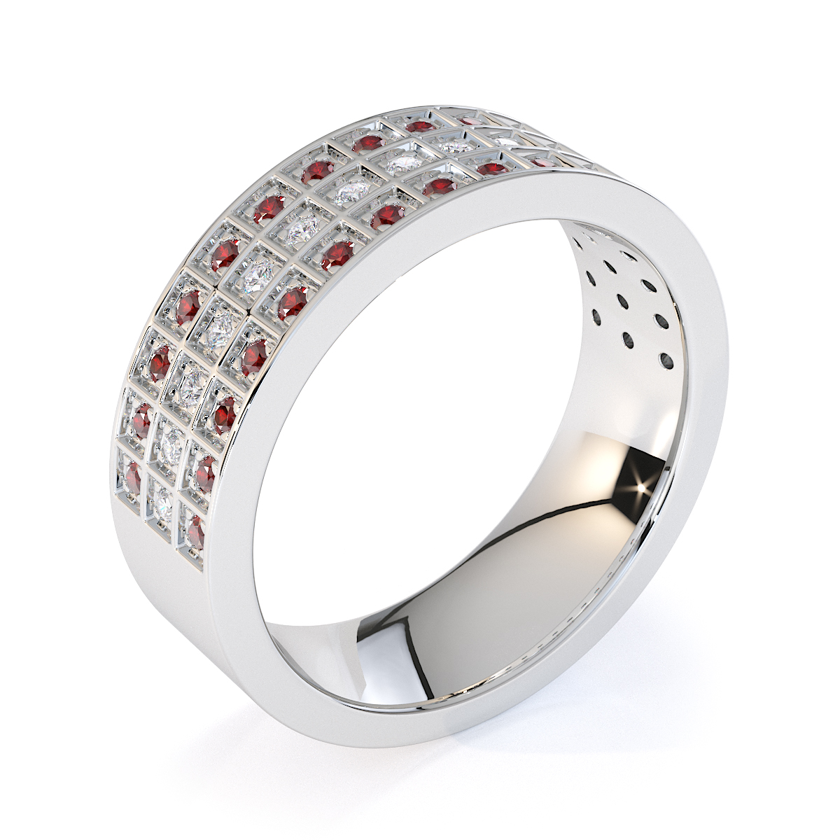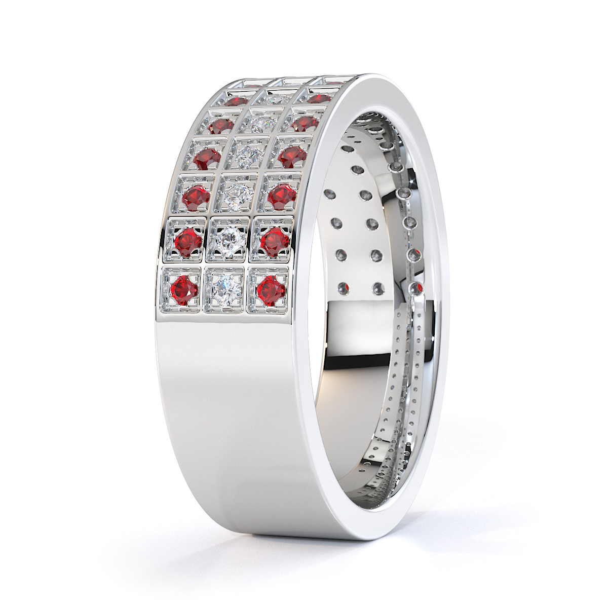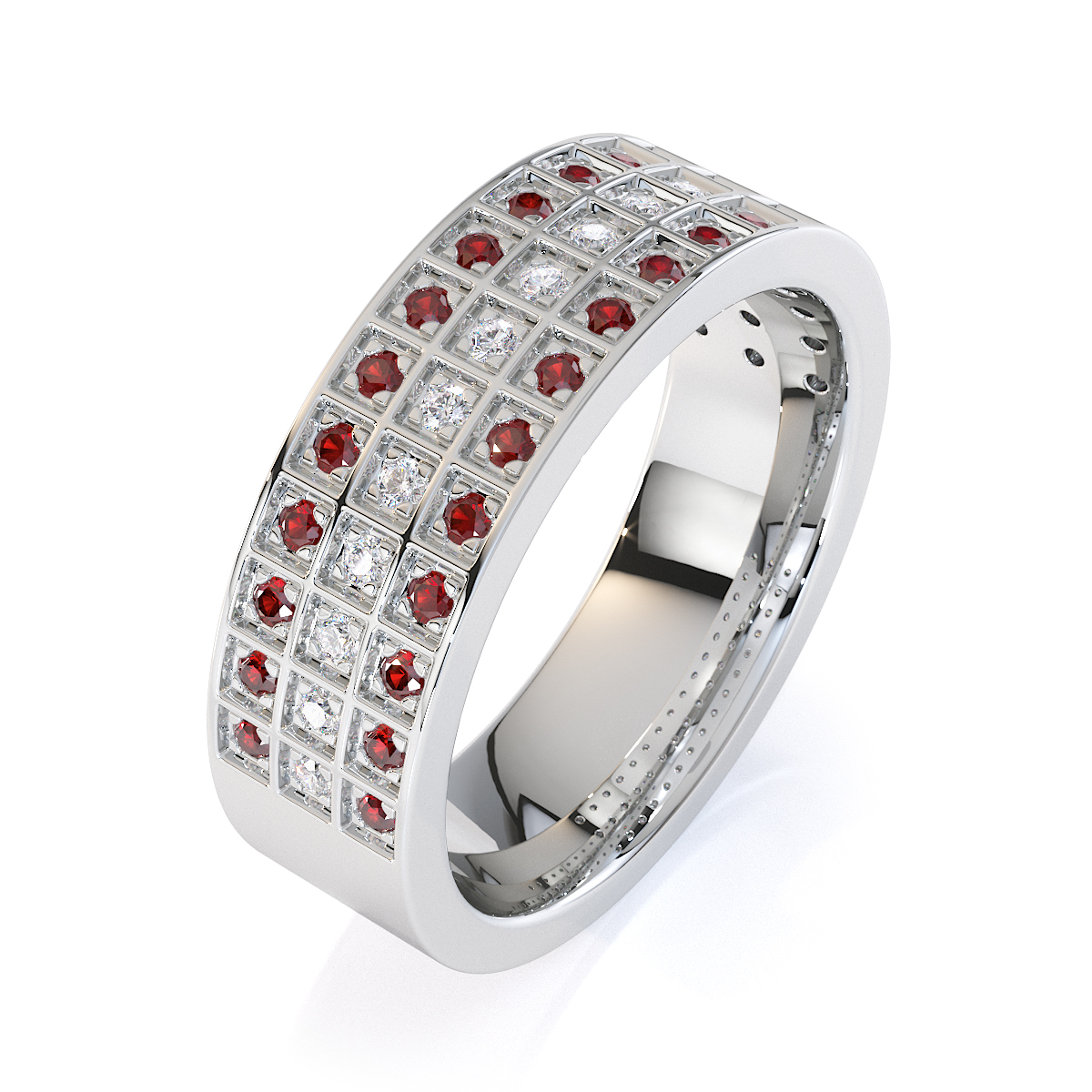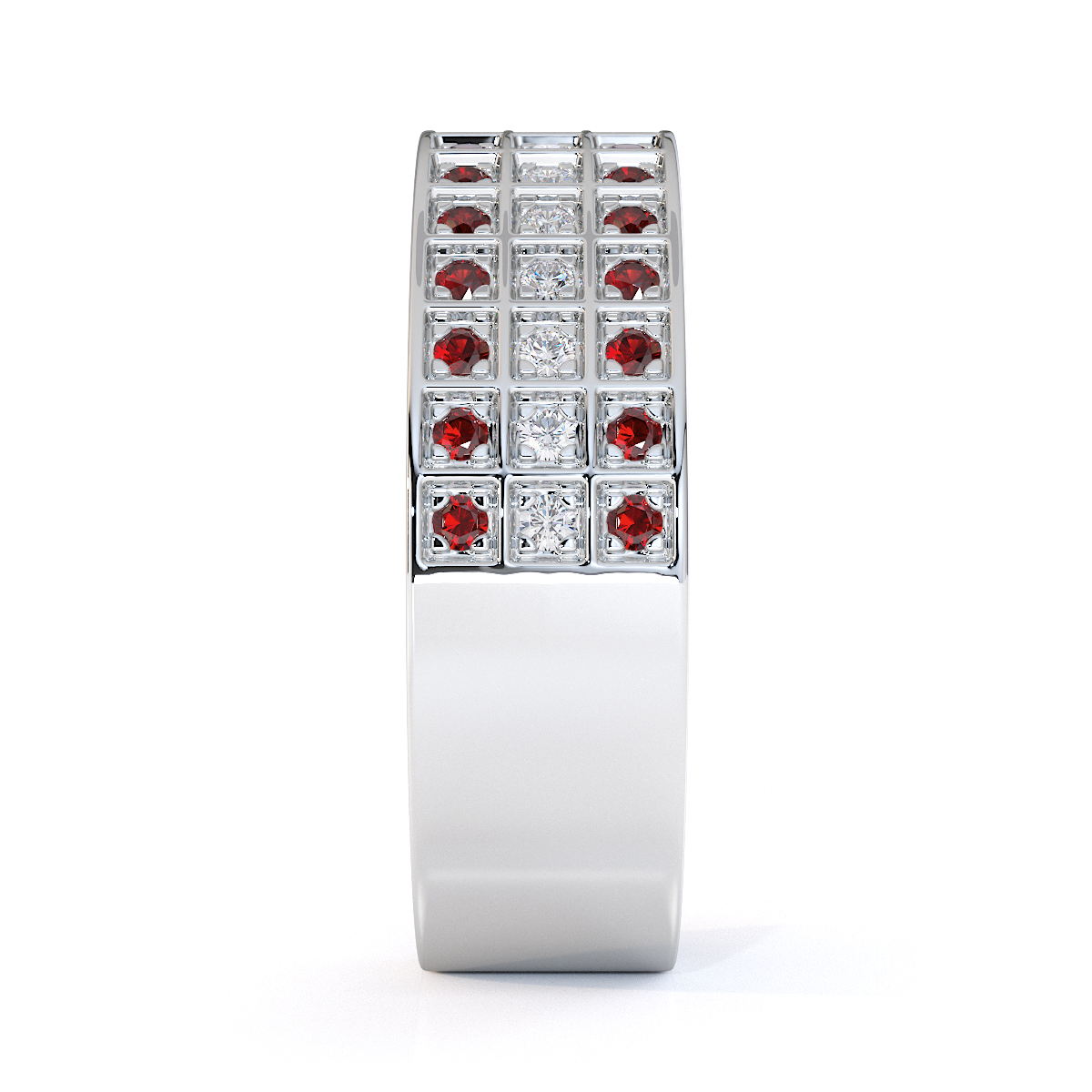 Three Row Claw Set Garnet Half Eternity Ring With Diamond 0437
