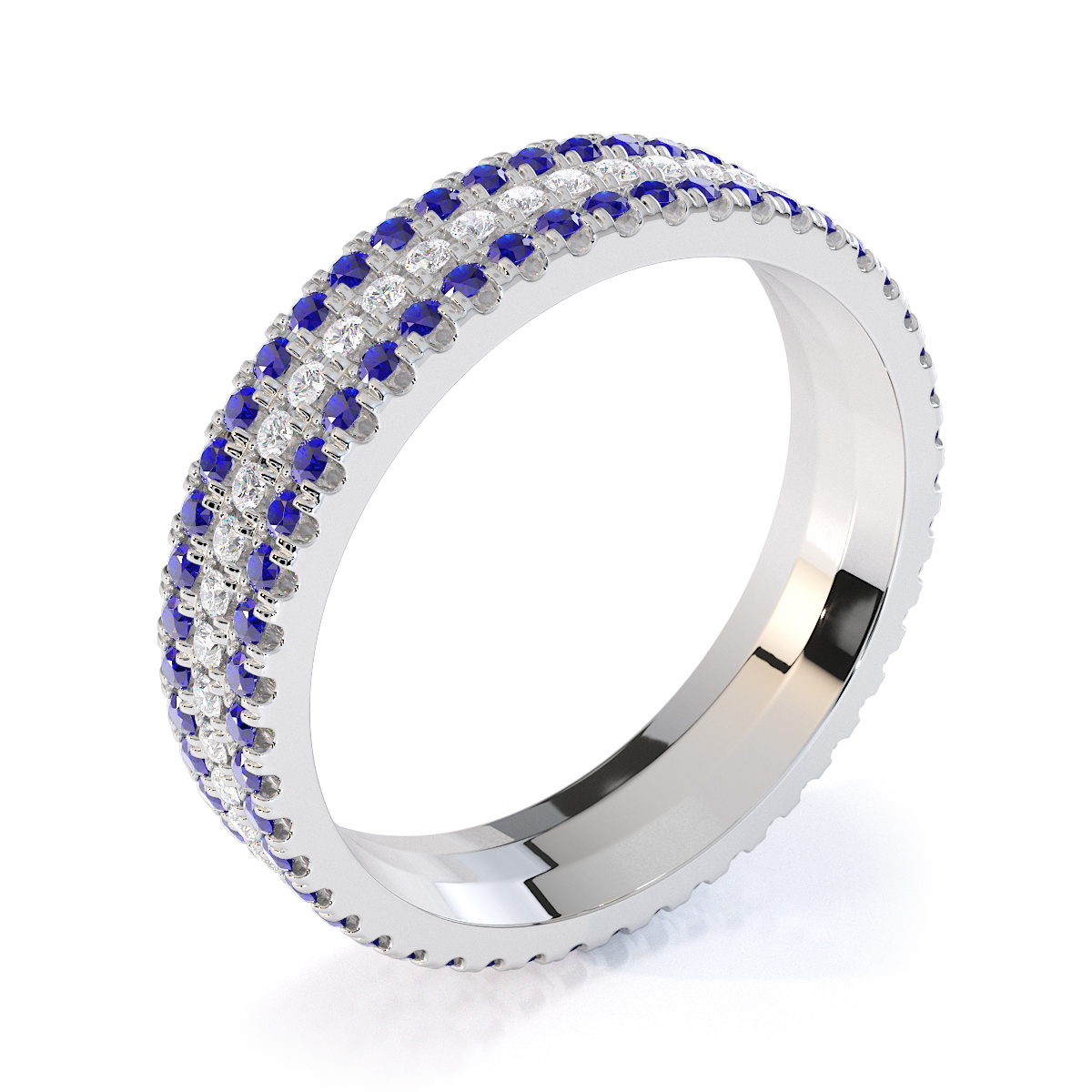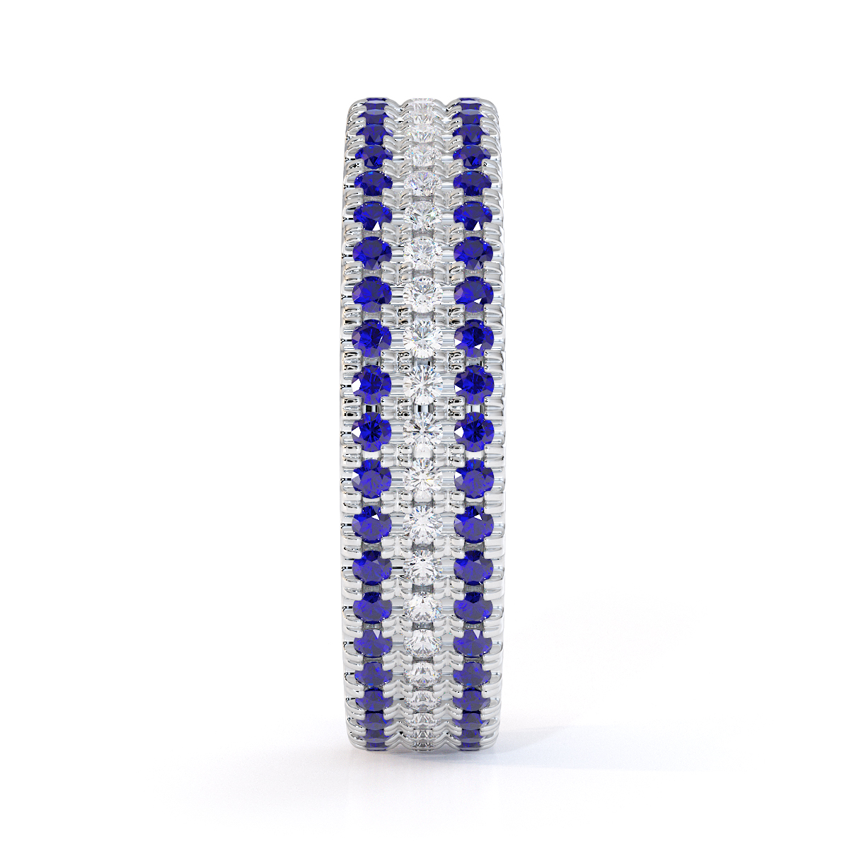 Three Row Round Cut Blue Sapphire and Diamond Full Eternity Ring 0442