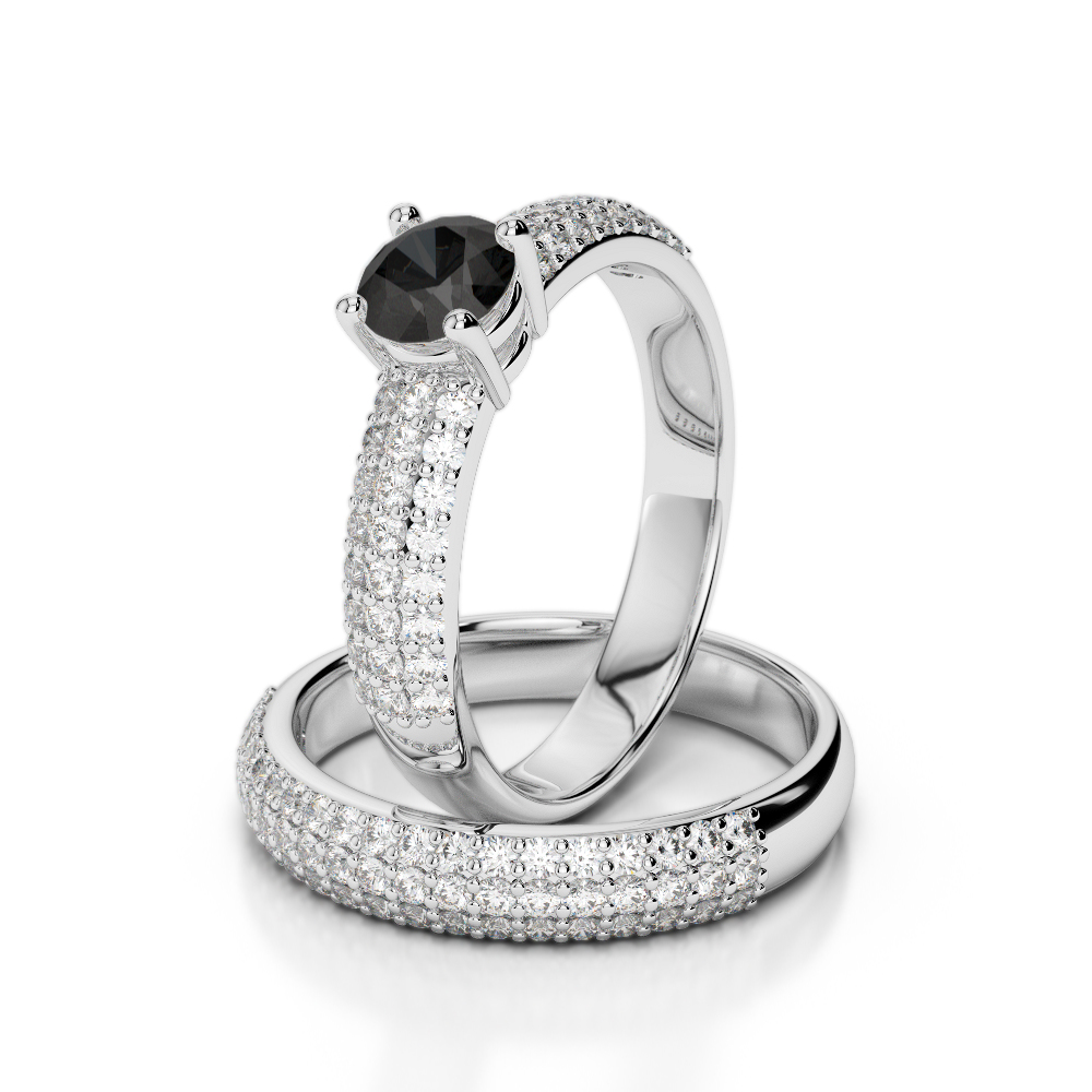 Triple Row Round Cut Black Diamond Bridal Set Ring 0307