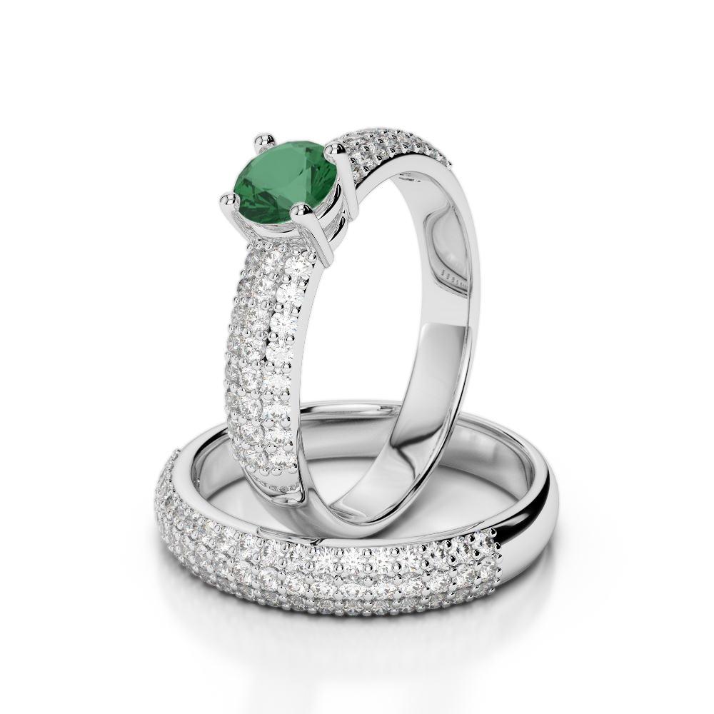 Triple Row Round Cut Emerald and Diamond Bridal Set Ring 0307