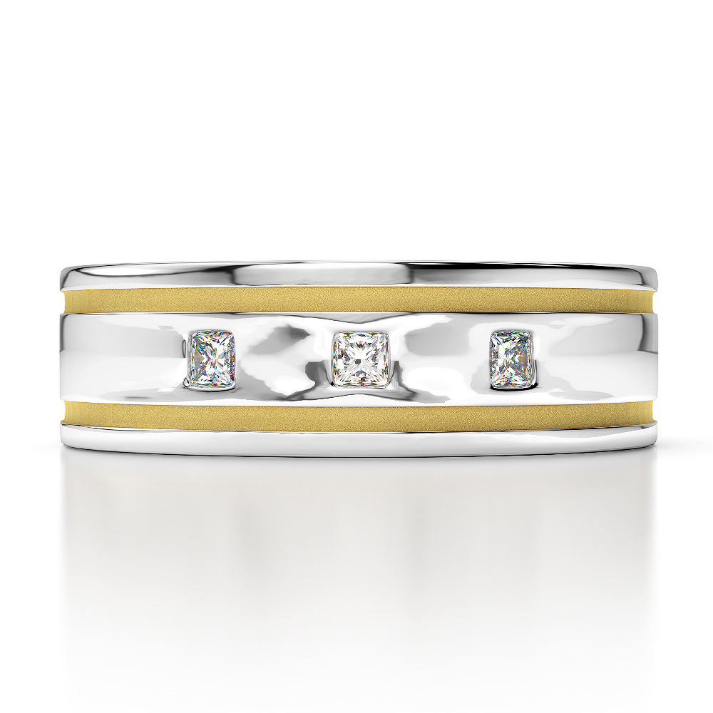 Two Tone Princess Cut Mens Diamond Wedding Ring in Gold 0128